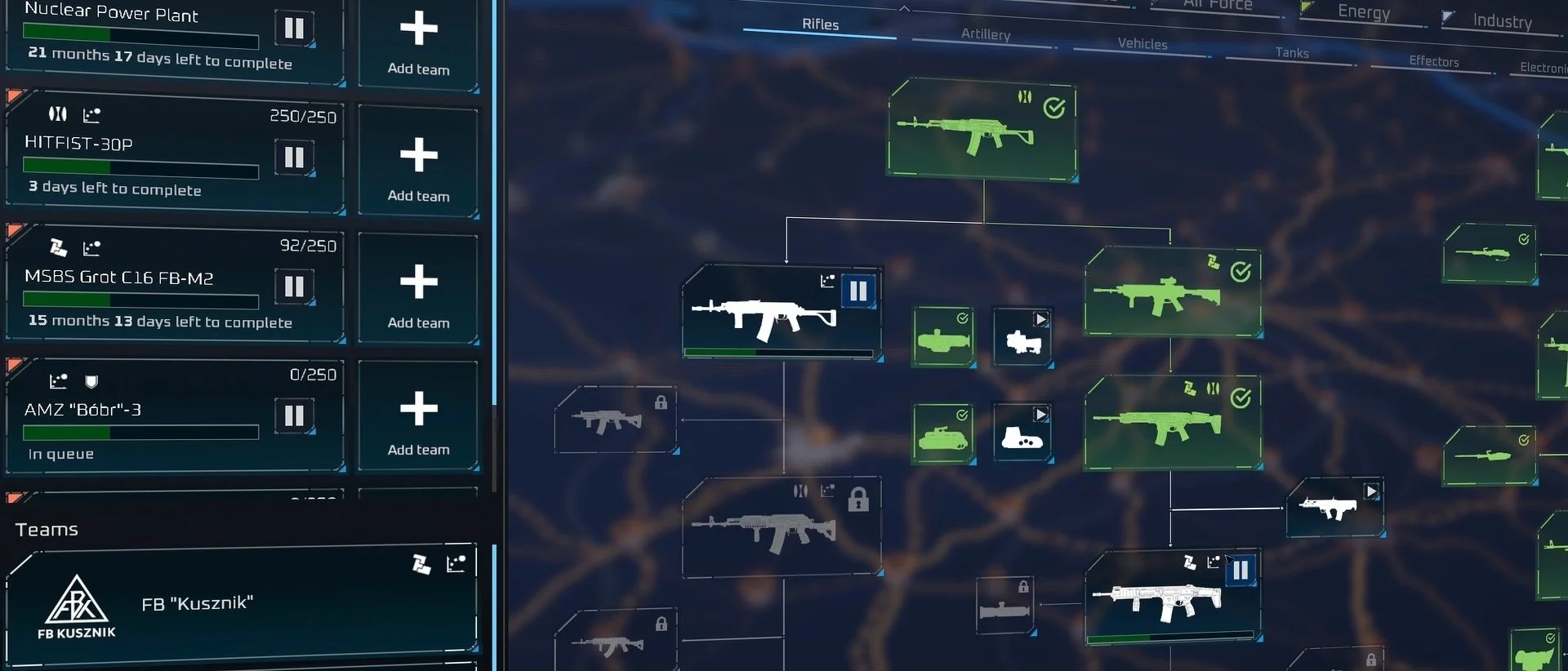 Develop research teams in key scientific and military fields. Improve logistics, production and combat capabilities. Upgrade your forces or buy and license technologies from others to stay competitive.